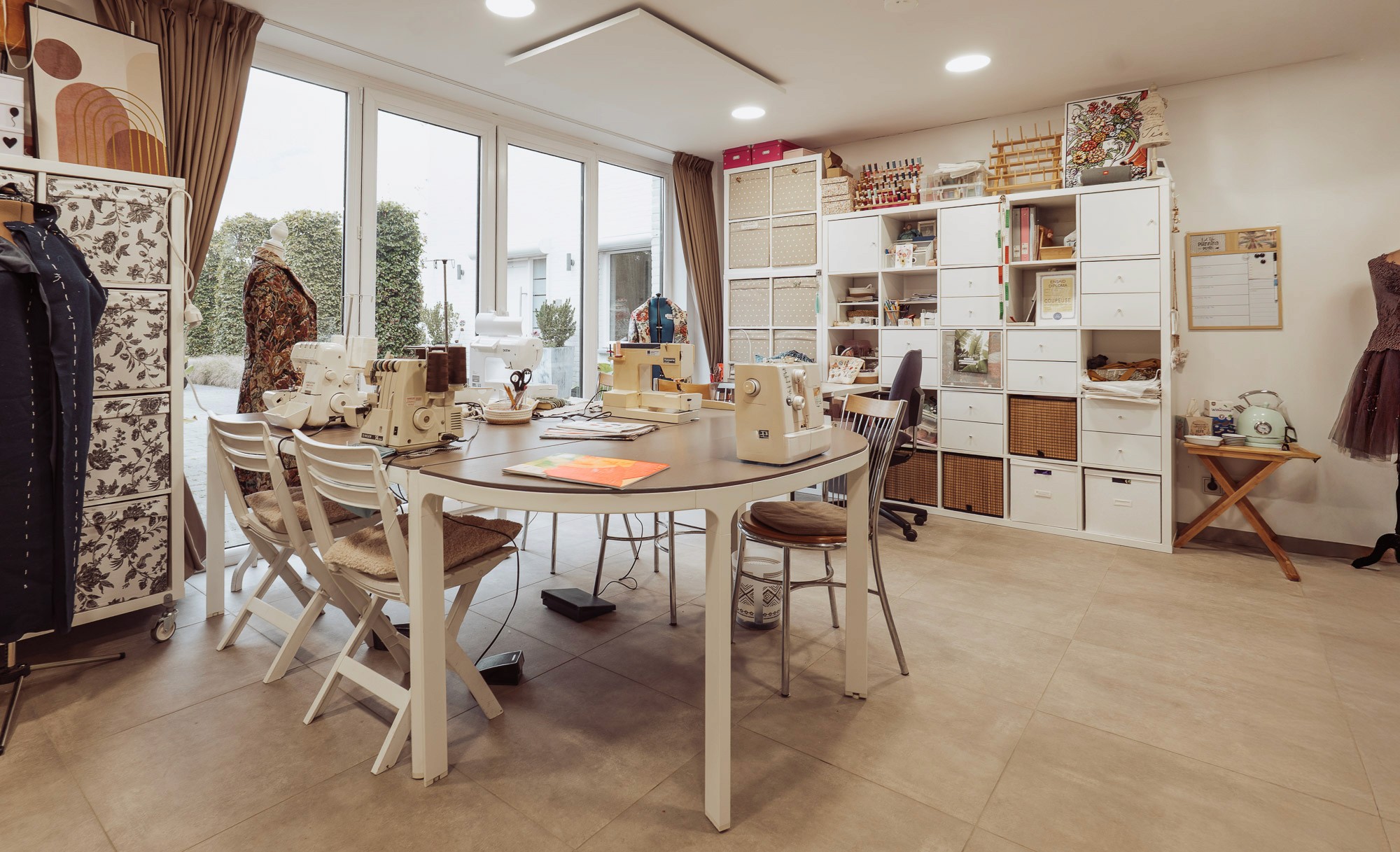 Ik ben coupeuse en help je stap voor stap ontdekken hoe leuk en creatief naaien kan zijn. In mijn atelier heerst een speelse en gezellige sfeer, met kleine groepen en veel persoonlijke aandacht.